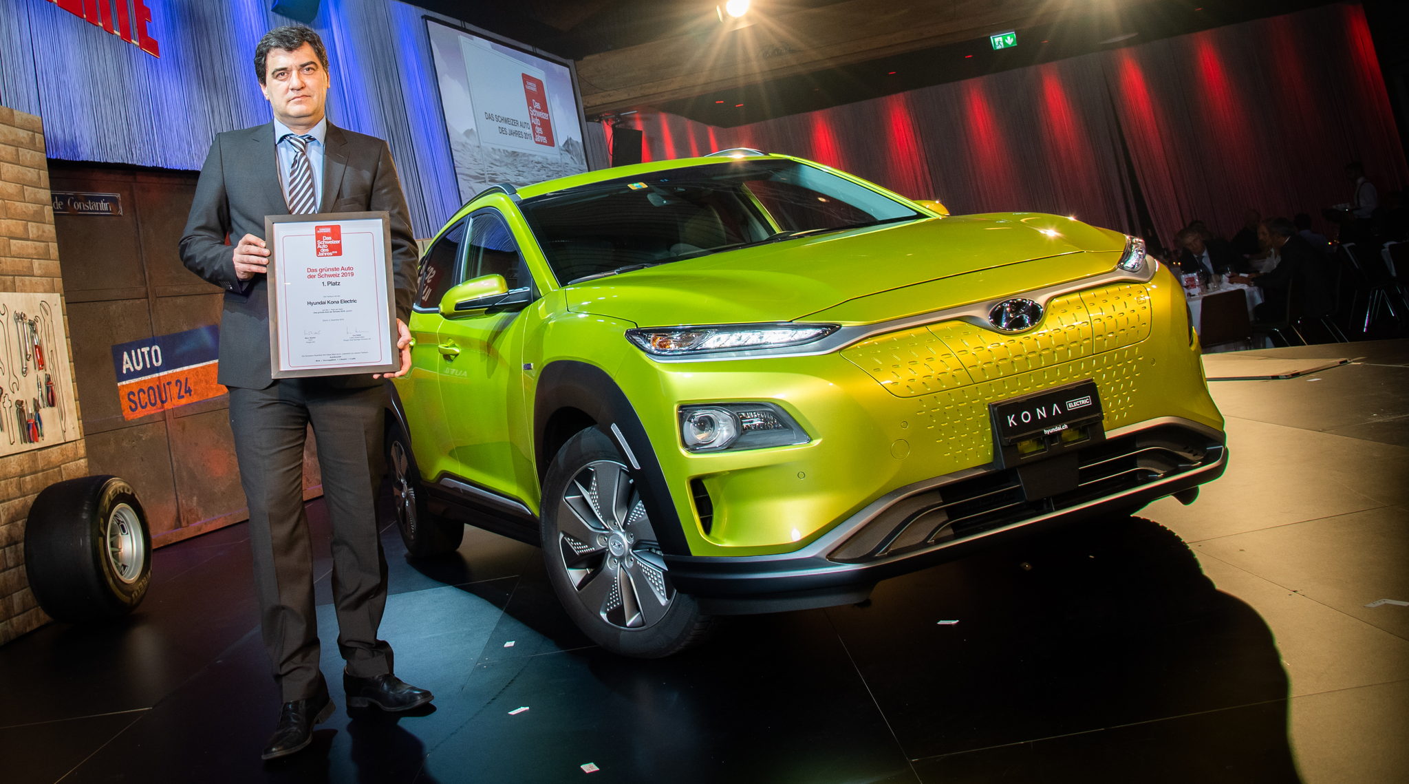 Veljko Belamaric: «J’apprécie cette distinction comme étant une reconnaissance adressée à l'équipe de Hyundai. Vous – et nous en tant que représentant de la marque en Suisse – sommes conscients de notre responsabilité à vouloir ouvrir la voie de la mobilité individuelle de l’avenir, au plan mondial et en Suisse. Il est évident que la réduction des émissions de CO2 va dans cette direction. Néanmoins, Hyundai est également conscient que le client associe cette exigence avec d’autres revendications en matière de design, d’utilité, de fonctionnement et de plaisir de conduire. Premier véhicule entièrement électrique du segment des SUV compacts, All-New KONA electric remplit précisément ces exigences. Je remercie chaleureusement le Jury d’experts pour la remise de cette précieuse distinction.»