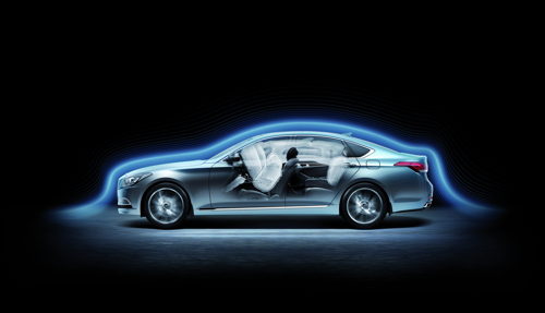 « Les capteurs de la nouvelle Genesis ne sont pas qualifiés de « nerfs » uniquement pour leur capacité à améliorer les aptitudes cognitives du conducteur. Ils sont presque assimilables à des « réflexes » percevant les situations d'urgence et les gérant à la place du conducteur. » – Dong Hoon Han, designer Commandes de sécurité et châssis, Hyundai Motor Company